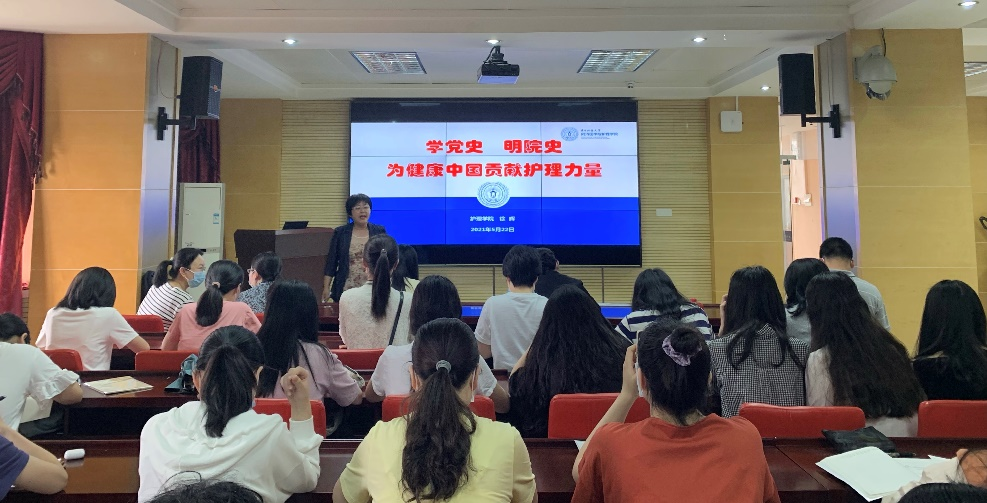 5月27日下午,为响应校党委的相关要求,切实做好党史学习教育工作,beat365英国官方网站党委书记徐晖以“学党史明院史,为健康中国贡献护理力量”为题,为学院党员师生代表上了一堂生动的专题党课。学校党史学习教育第五督导组副组长徐冬英到会指导。