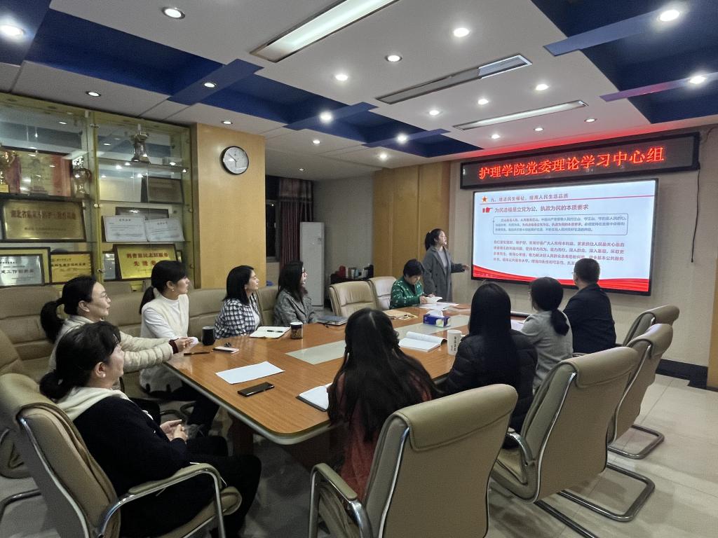 11月21日,beat365英国官方网站党委理论学习中心组与教工党支部集中学习党的二十大精神,青年教师龚桂兰、白雪按照党的二十大报告15部分的顺序,引领全体与会人员进行导读学习。党委书记徐晖结合二十大报告中的第五章“实施科教兴国战略,强化现代化建设人才支撑”、第九章“增进民生福祉,提高人民生活品质”等内容,畅谈学习体会,指出在“推进健康中国建设,保障人民健康放在优先发展”的战略进程中,护理学科使命光荣、责任重大。作为985高校的beat365英国官方网站教师,既要为科教兴国、健康中国贡献智慧与力量,又担负着做好立德树人、为祖国卫生健康事业培养合格建设者和可靠接班人的历史使命。我们要在党的二十大精神指引下,锐意进取、担当作为,为实现卫生健康事业高质量发展做出贡献,为全面建成社会主义现代化强国、实现第二个百年奋斗目标筑牢健康之基。