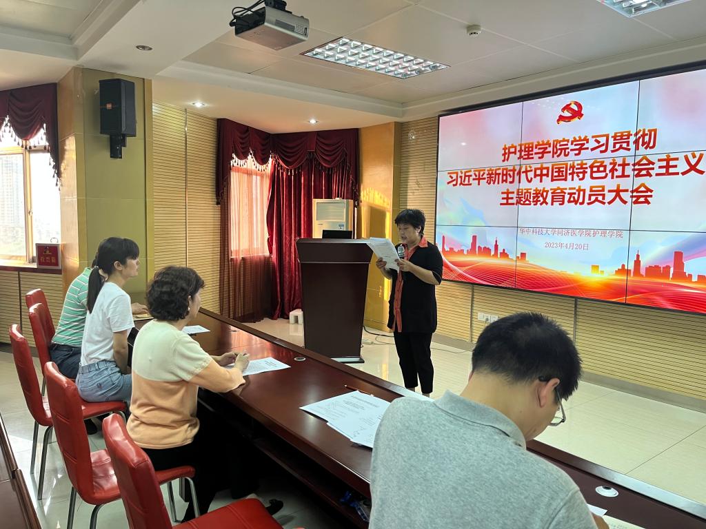 徐晖指出,开展主题教育,是统一全党思想,在思想上政治上行动上同以习近平同志为核心的党中央保持高度一致的必然要求;是贯彻落实党的二十大战略部署,以高质量发展推动中国式现代化的必然要求;是推进党的自我革命,解决党内存在的突出问题、始终保持党同人民群众血肉联系的必然要求。beat365英国官方网站开展本次主题教育,要坚持不懈用习近平新时代中国特色社会主义思想凝心铸魂,推动全院师生更加深刻领悟“两个确立”的决定性意义,更加自觉增强“四个意识”、坚定“四个自信”、做到“两个维护”,自觉用党的创新理论统一思想、统一意志、统一行动,弘扬伟大建党精神,牢记“三个务必”,更加紧密地团结在以习近平同志为核心的党中央周围,以奋发有为的精神状态为提升人民健康水平、为老年化社会的到来做出护理学科应有的贡献。