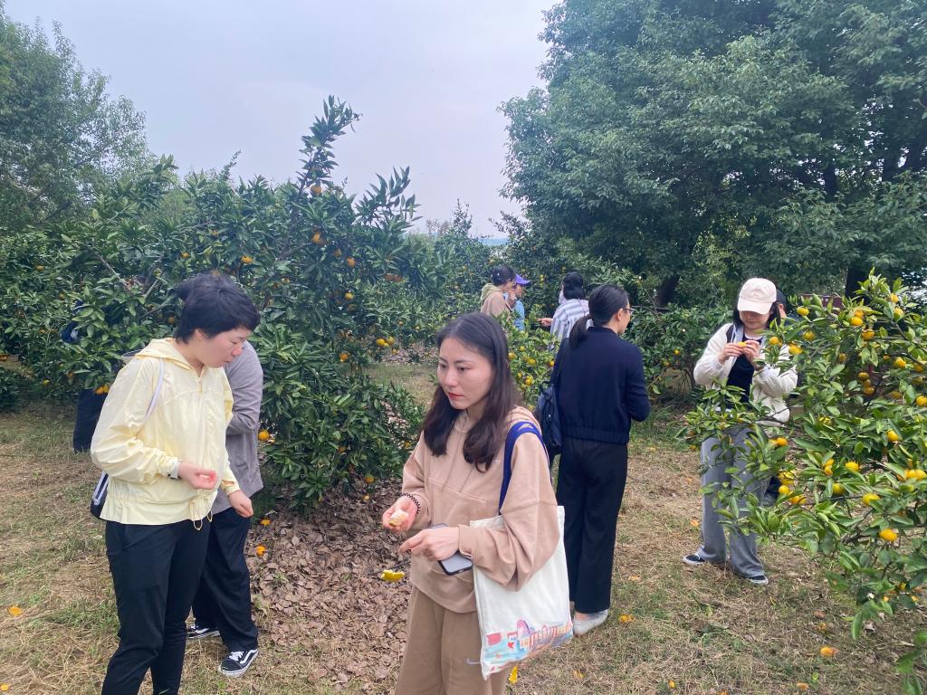 下船登岛后,大片橘林尽收眼底,老师们品蜜橘之味,赏田园风光,体验采摘的乐趣。