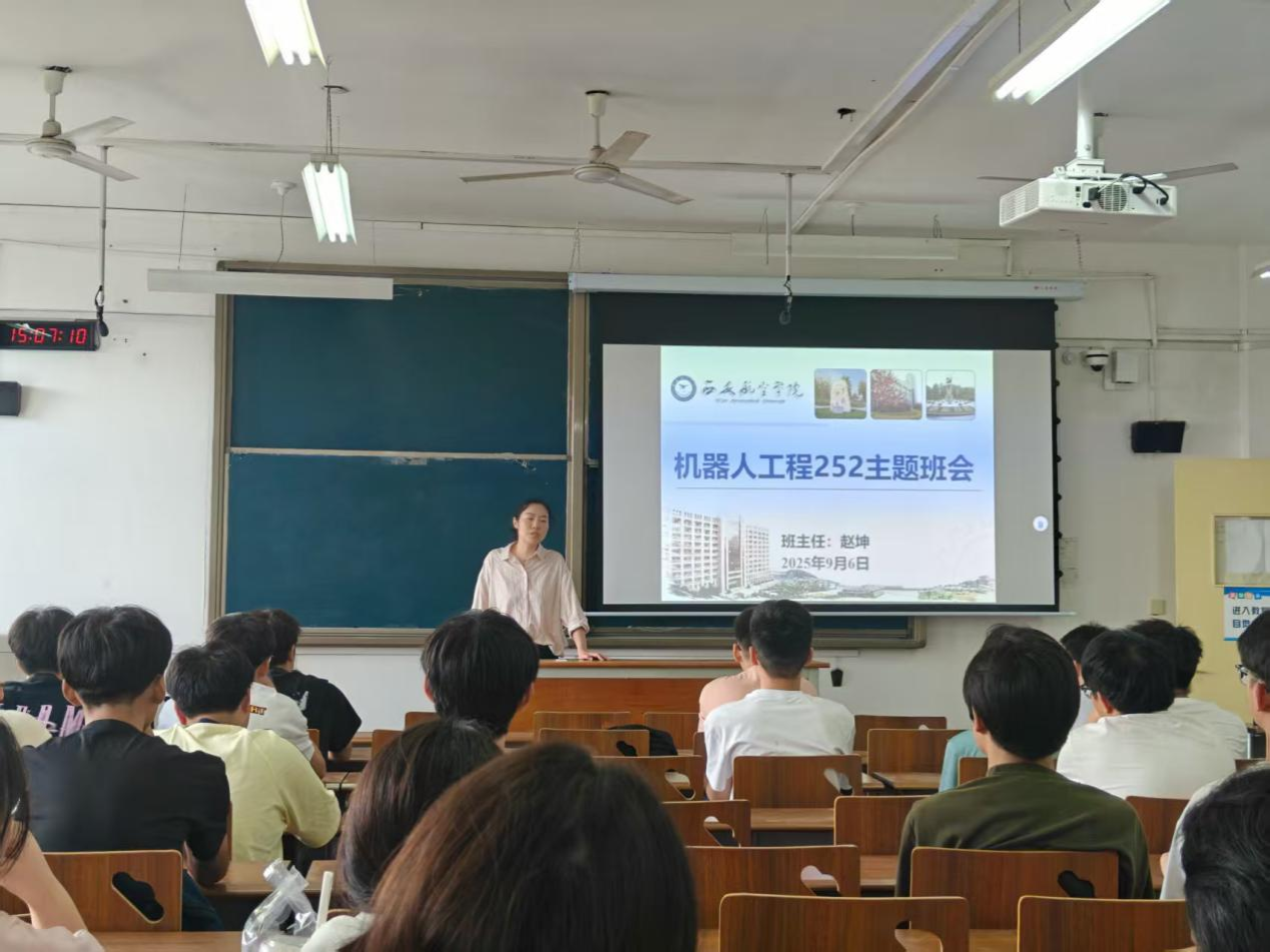 2025年9月6日,机器人工程专业在1436教室召开2025级新生见面会。机器人工程教研室主任、机器人251班主任李逸仙、机器人252班主任赵坤、机器人工程专业负责人王莹以及骨干教师王鹏参加此次会议。