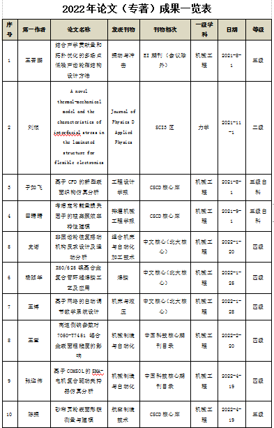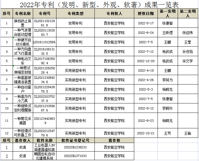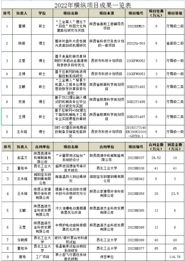 beat365官方网站在校级科研平台——机电技术研究所的基础上,成立 6个科研团队:高端数控装备创新研发团队、工业机器人末端执行器设计及控制技术应用科研团队、航空材料力学性能分析与表征科研团队、航空先进制造系统集成及其自动化科研团队、航空液压装备设计与测试科研团队、新质装备技术及应用科研团队。2022 年beat365官方网站积极申报各类项目 41 余项,获 4批陕西省科技厅项目 1 项、西安市科技局 2 项,校级基金立项 8 项; 纵向项目到款 10.5 万元;结题 6 项,其中国家级 1 项,厅局级 3 项, 校级 2 项;横向项目:签订横向课题 13 项,合同金额 384.02 万元, 到款额 313.25 万元;其他:发表各类学术论文 10 篇,其中 SCI 1 篇, CSCD 检索 2 篇,核心论文 15 篇,普刊 1 篇;授权发明专利 5 件、实用新型专利 8 件。