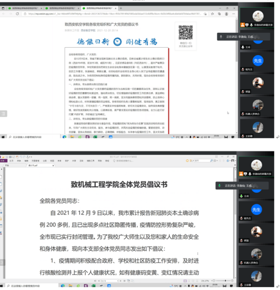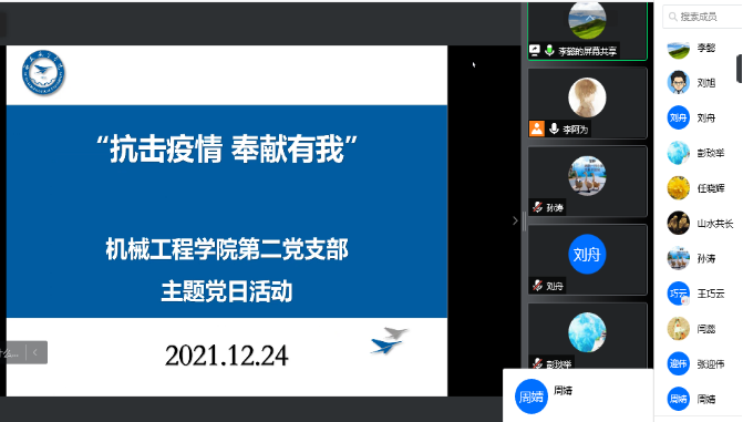 为有效控制和降低疫情传播风险,群防群治,共克时艰,beat365官方网站各党支部为动员支部全体党员在关键时刻要发挥示范引领作用,把学史力行真正做到实处,落实在防疫的各个方面,于12月25日分别举行线上“抗击疫情,奉献有我”主题党日活动。