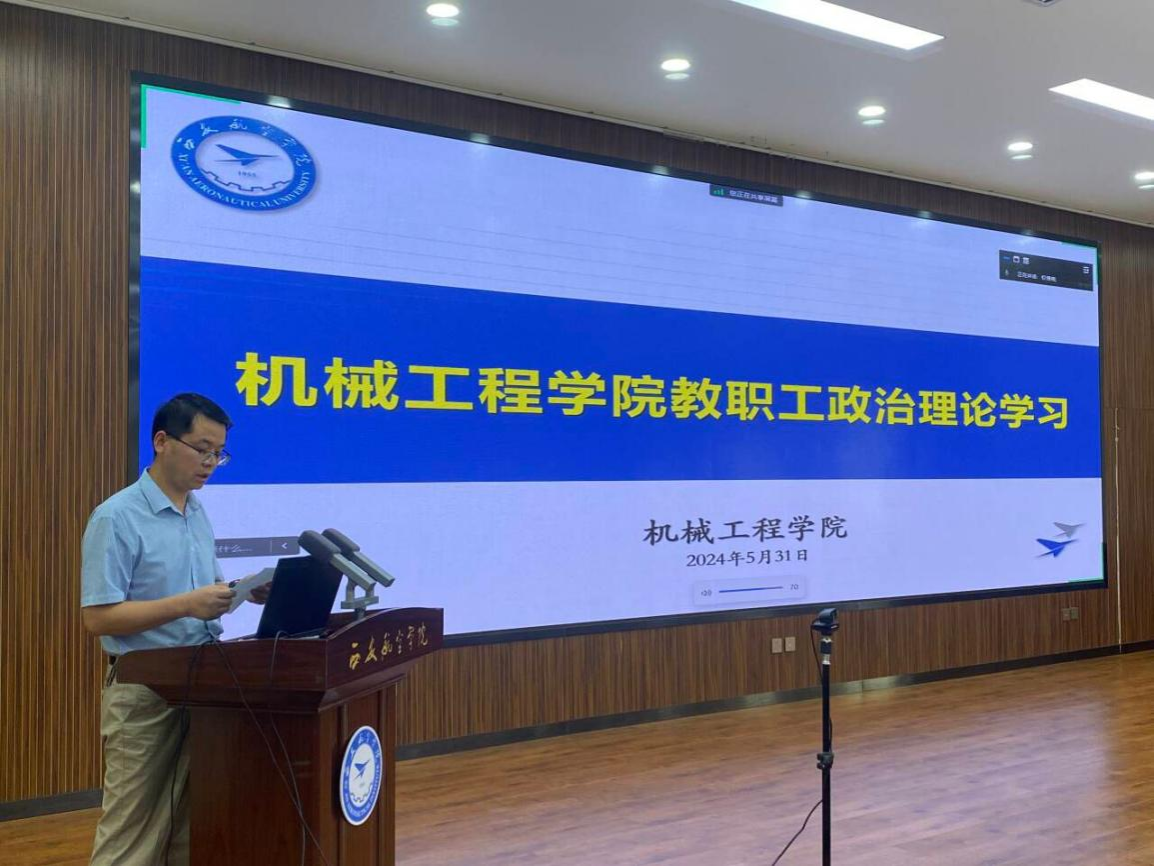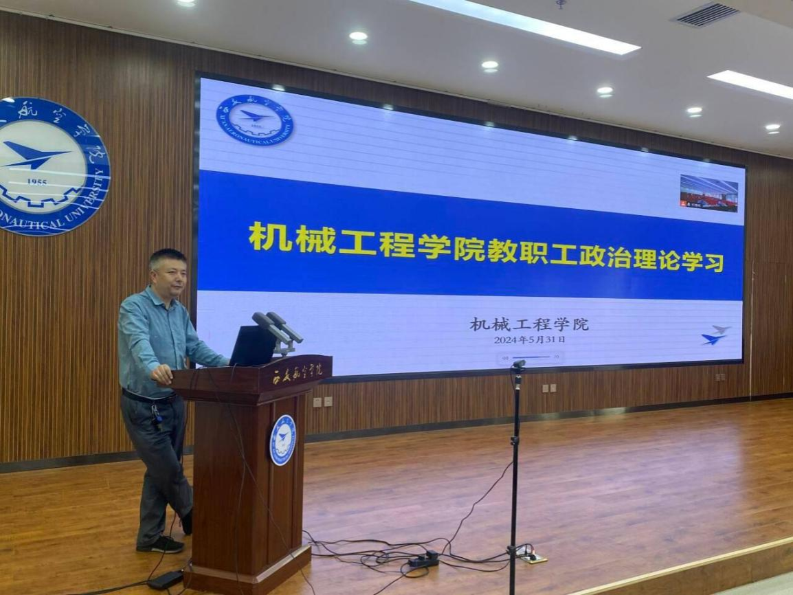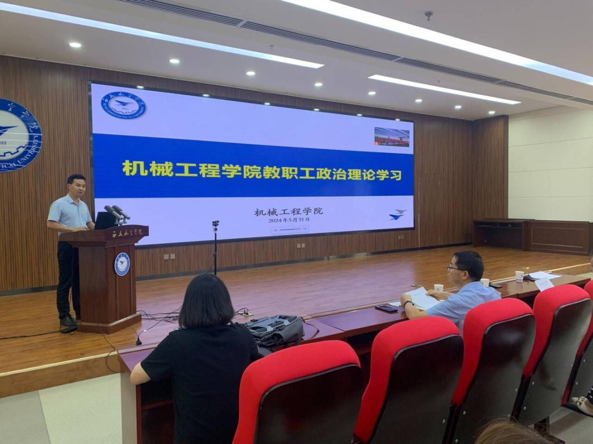 2024年5月31日,beat365官方网站在莲湖校区图书馆五楼报告厅举行了政治理论学习会议。会议由党总支副书记王永锋主持。beat365官方网站二级党组织中心组全体党员及全体教职工参加了此次会议。
