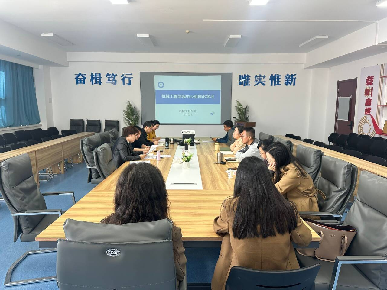 杨武成同志领学了习近平总书记在全国“两会”上的重要讲话精神,重点讲解了习近平总书记关于推动高质量发展、深化改革开放以及加强国家治理体系和治理能力建设等方面的重要指示,指出要结合学院实际,推动教育和科研事业的创新发展,提升整体办学水平。王嘉雨同志带领大家学习了《中共陕西省委办公厅关于开展向“三秦楷模”张新科、史礼海同志和补浪河女子民兵治沙连学习活动的决定》的通知,强调要深入学习张新科、史礼海同志的事迹,从中汲取力量和智慧,激励大家在工作中勇于担当、创新进取。李懿同志对全国教育大会精神进行了详细解读,阐明了教育大会提出的新时代中国特色社会主义教育发展方针,并讨论了如何在学院内贯彻落实相关政策,进一步提升人才培养质量和科研水平。