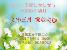 春暖花开,万物生长。2022年国际劳动妇女节来临之际,beat365官方网站分会于3月6日10点启动了“三月风华 美丽绽放”为主题的“云摄影”活动月。本次活动内容采用线上方式,包括云讲座和云比赛两个部分,旨在通过摄影图片展示学院女性教职工的时代风采。