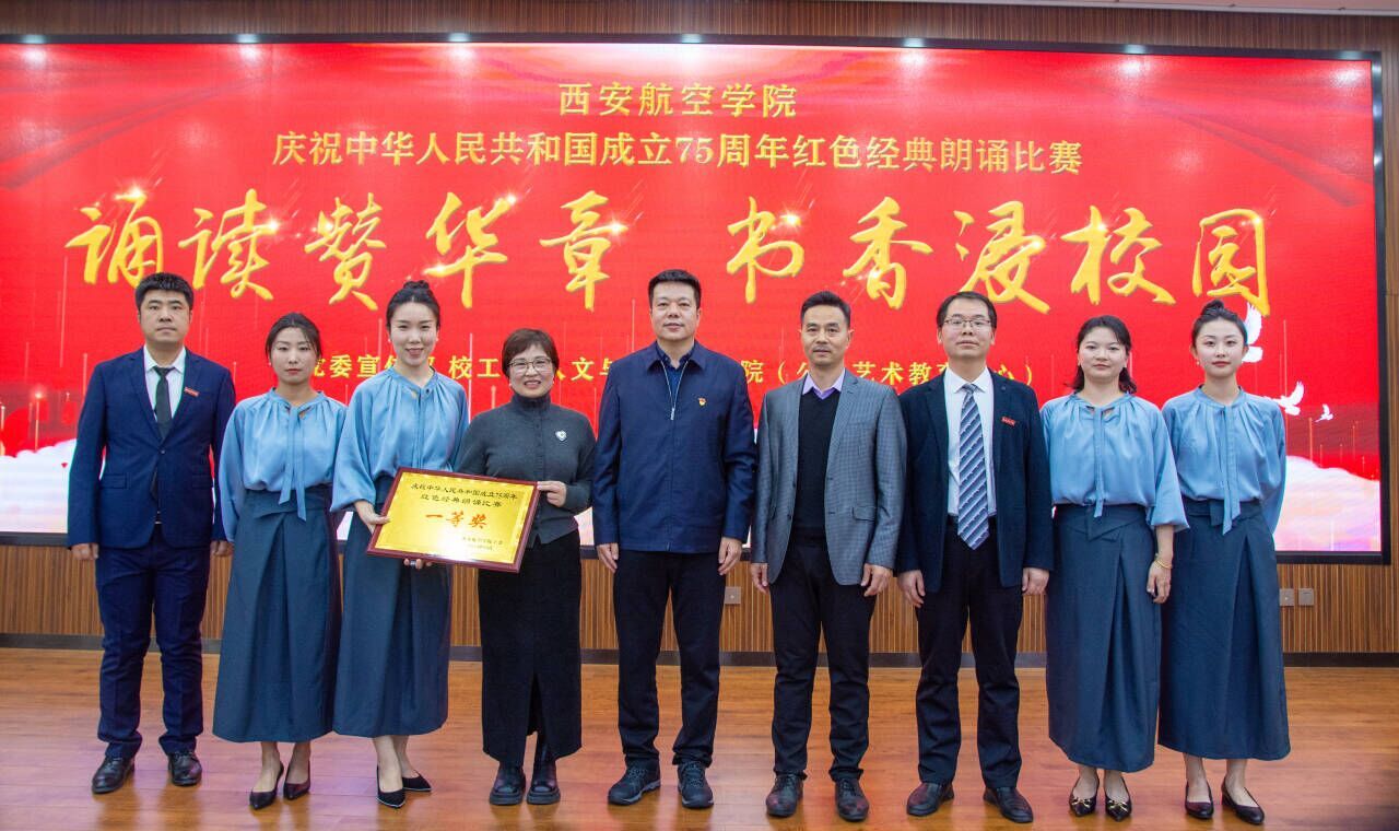 10月31日,由党委宣传部、校工会、人文与外国语学院(公共艺术教育中心)主办的“诵读赞华诞,书香浸校园——庆祝中华人民共和国成立 75 周年教职工红色经典朗诵比赛”活动在莲湖校区图书馆报告厅举行,学校共16个单位参赛。6名beat365官方网站教师组队代表学院参赛,经过激烈角逐,我院脱颖而出荣获此次比赛一等奖。