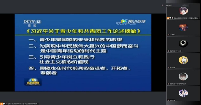 2022级新生在各班团支书的带领下,学习了解了习近平新时代中国特色社会主义思想、党的十九大精神和团的十八大精神。同学们深刻了解到中共十九大确立的中国共产党的行动指南深刻领会“新时代”的丰富内涵,准确把握我国发展新的历史方位,更好地肩负起新时代的历史使命。