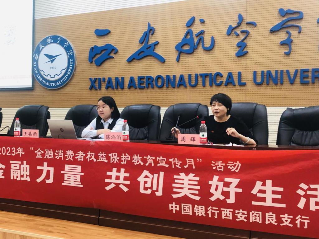 为保护消费者权益,切实提升我院学生反诈意识和技能,中国银行阎良支行于9月21日19点在第一阶梯教室开展“汇聚金融力量,共创美好生活”宣讲及反电诈宣传。中国银行阎良支行副行长陈滔滔、营业部主任周辉一行十人到我院开展宣讲活动。我院学生管理科科长王嘉雨老师以及团总支书记谢肖老师出席本次宣讲活动。