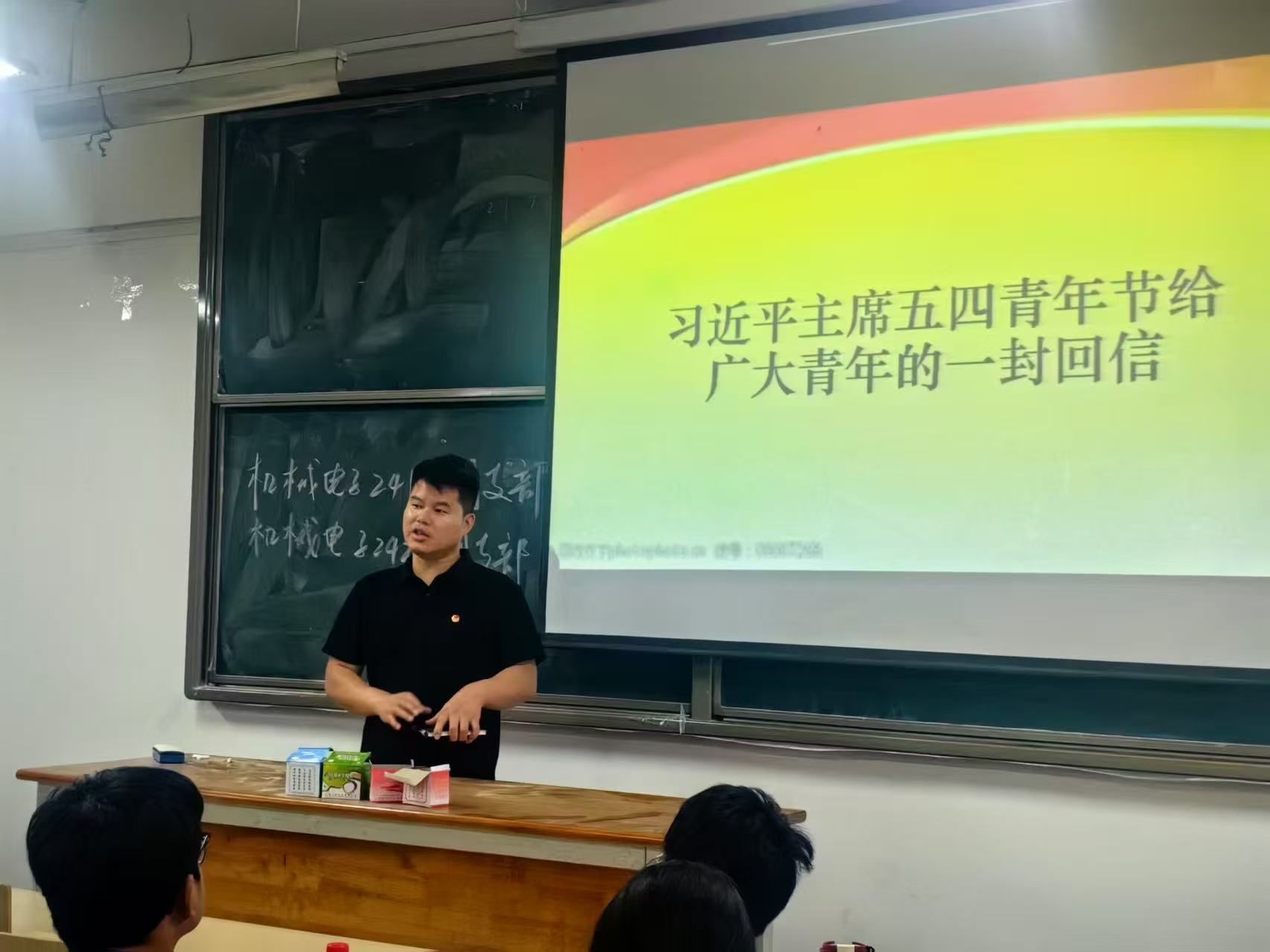 同时,何正军老师与机械电子工程241B及242B团支部的团员们谈及习近平主席五四青年节给广大青年的一封回信,要求广大团员们努力继承和发扬五四精神,坚定理想信念,站稳人民立场,练就过硬本领,投身强国伟业。在学习中遇到困难时,想想五四青年们面对国家危亡时的坚定与勇敢,就没有理由退缩。在生活里,要积极关心国家大事,培养爱国情怀,以实际行动践行五四精神。