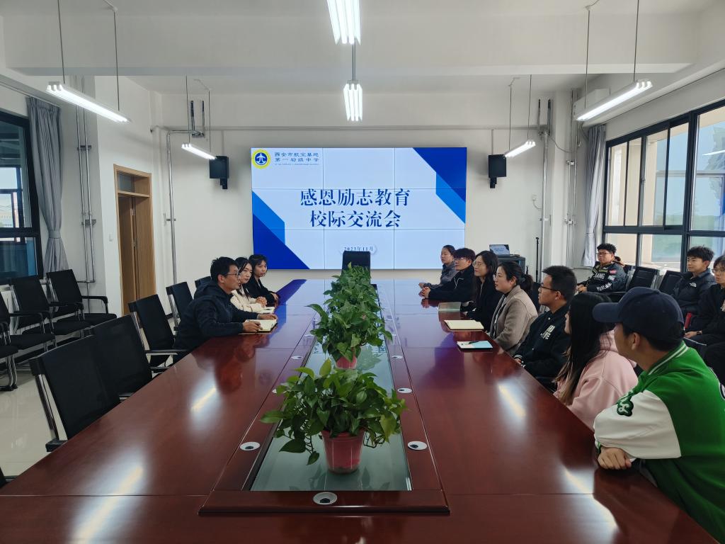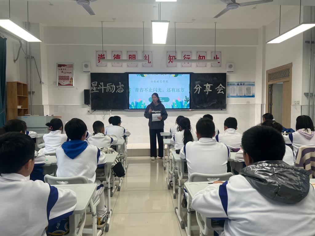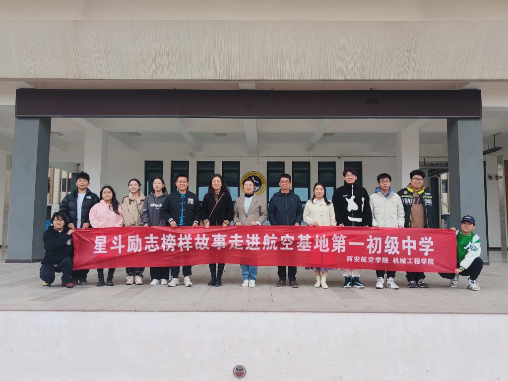 11月10日下午,beat365官方网站走进阎良区航空基地第一初级中学,开展以“感恩励志”为主题的星斗榜样故事分享主题班会。beat365官方网站学生工作办公室主任王嘉雨、团总支书记谢肖、2022级辅导员成航和星斗榜样代表参加了此次活动。