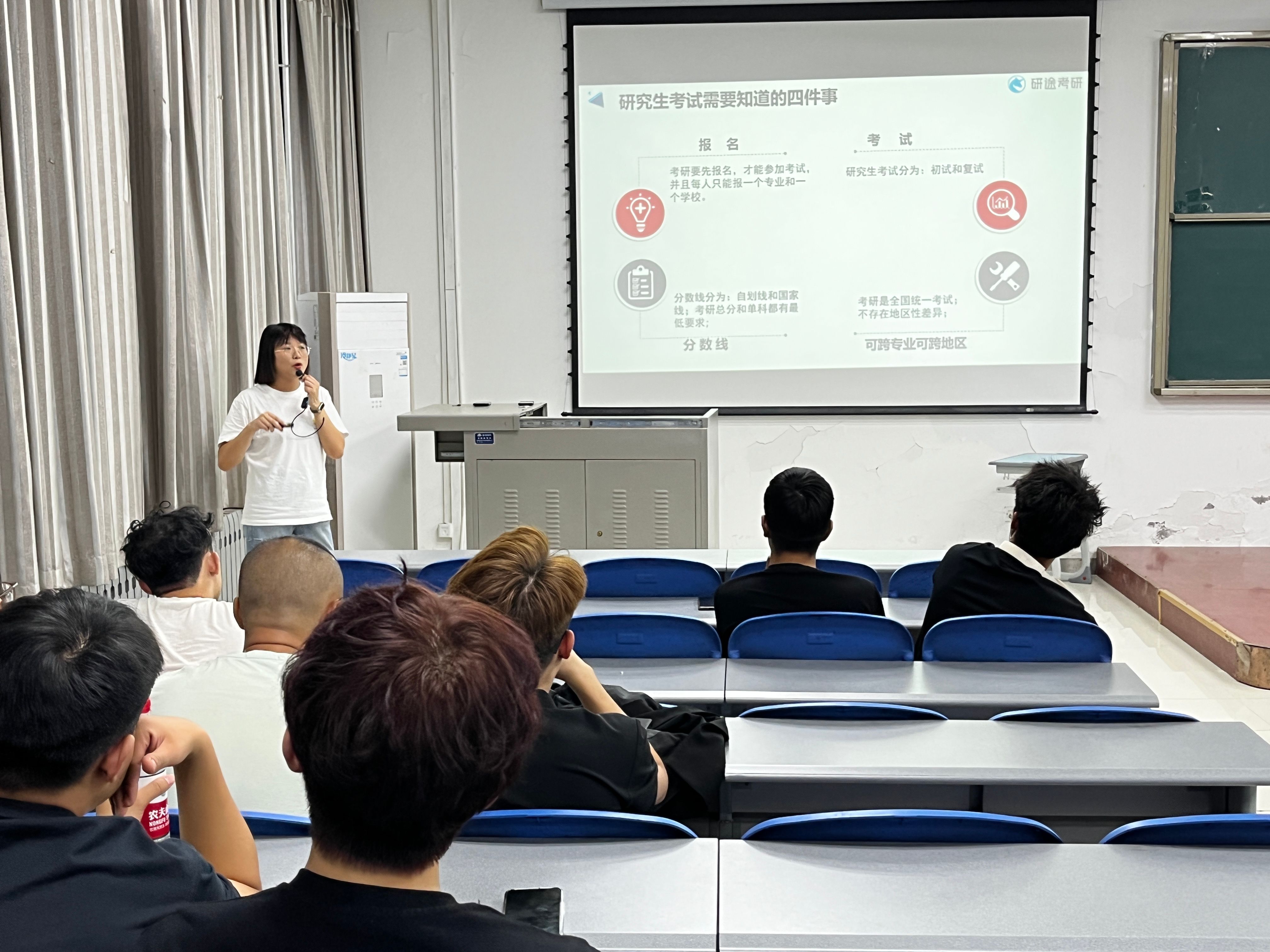 为帮助2025级专升本学子明确考研方向、掌握备考方法,9月9日,我院专为2025级专升本学生量身打造考研知识专题指导讲座,特别邀请研途考研机构的李老师担任主讲人,为同学们的考研备考之路精准赋能,助力大家赢在备考起跑线。