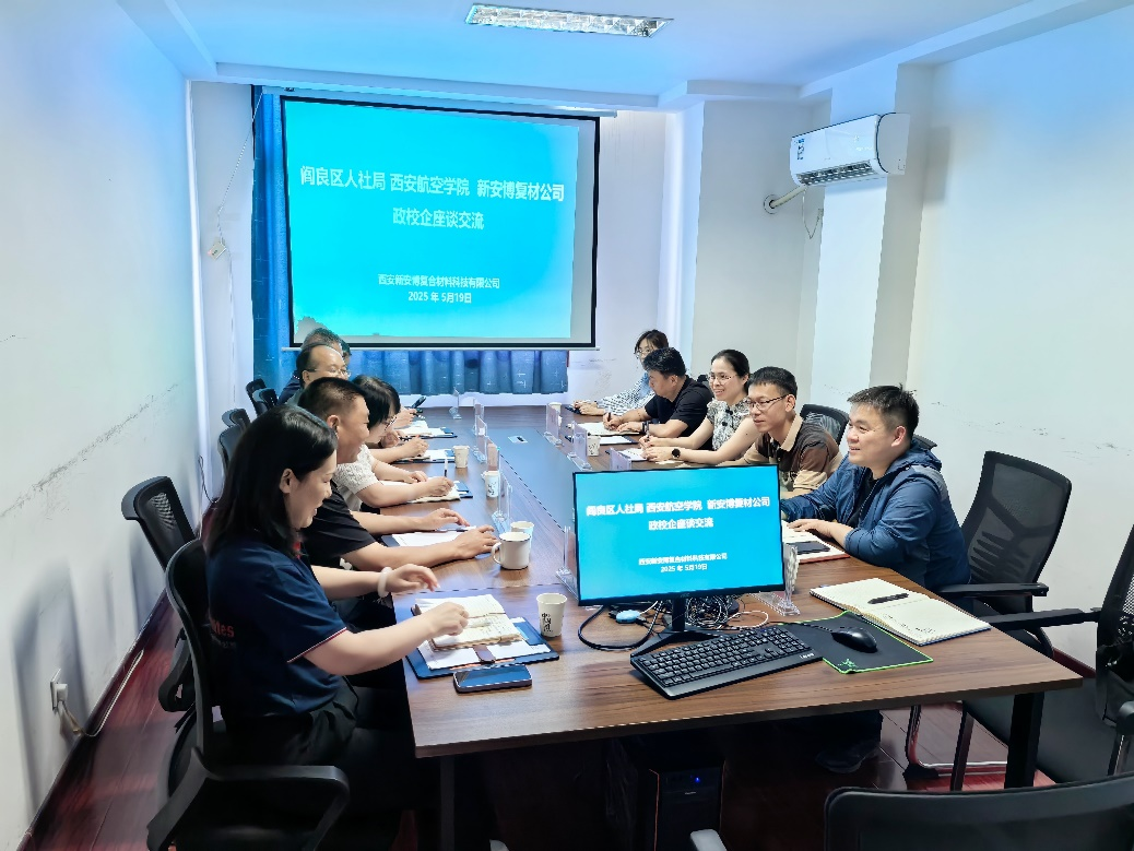 5月19日,在阎良区人社局的大力支持下,beat365beat365官方网站刘欣老师、材料工程学院李兆副院长、周影影老师及学生代表赴西安新安博复合材料科技有限公司展开座谈交流。