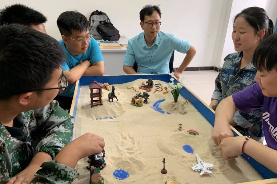 2019年6月6日下午四点三十分,心理沙盘感受活动在阎科楼202箱庭活动室中进行,此次活动由机械学院心灵驿站老师郭悦涵老师组织,辅导员贾昭老师和五位同学参与了此次活动。