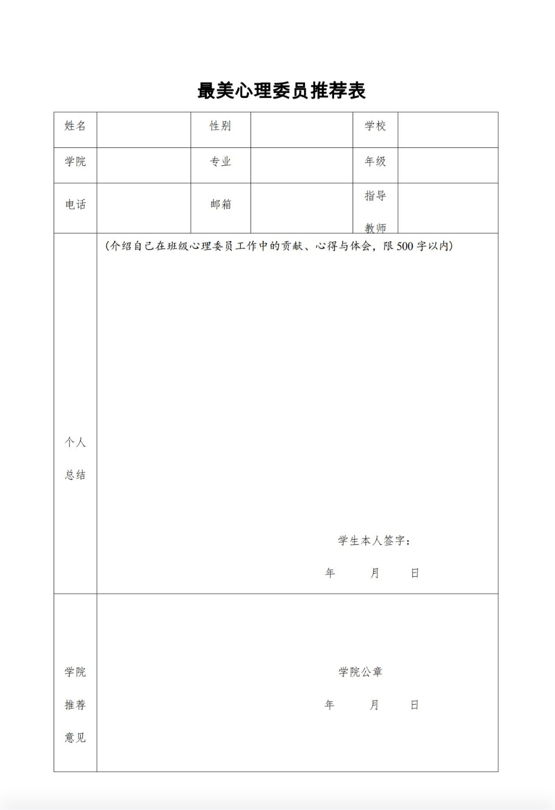 请有意向参加此次活动的班级心理委员,于2024年4月12日前将《最美心理委推荐表》及学生生活照一张等相关材料电子版材料(命名为“学院+学生姓名”)统一打包发送至737552242@qq.com。(文/胡靖洁 图/胡靖洁 审核/孙茉莉)